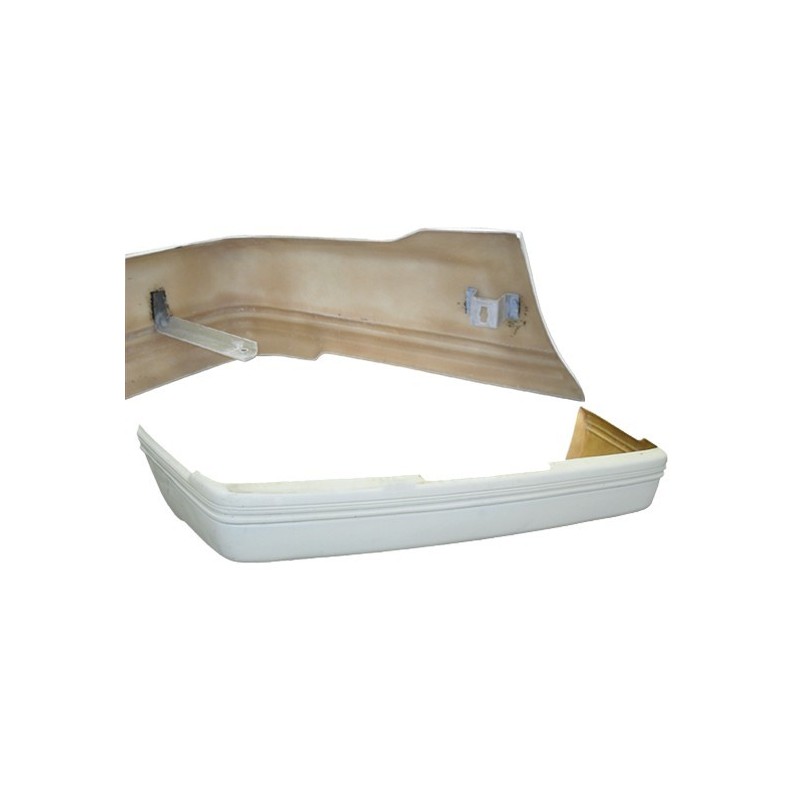 Reproduction fiber glass rear bumper, outer skin only. Requires brackets fabricated to suit on car fitment. Smooth Jell coated exterior finish.
