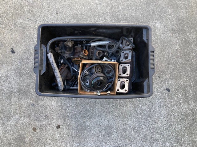 Used parts bin full of Engine parts for Sierra Cosworth, contact Lodge Auto Centre with any inquiries. Items in bin are for sale individually. Many more bins of used Sierra Cosworth parts.