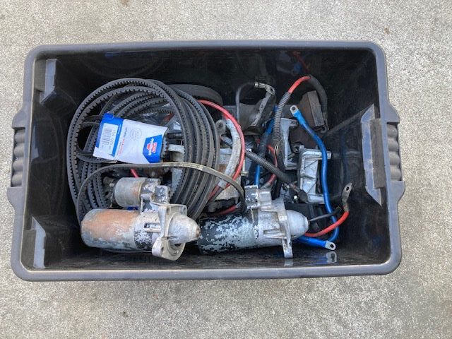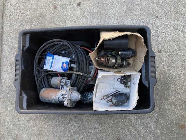 Used parts bin, full of Starter Motors and Alternator Parts for Sierra Cosworth, contact Lodge Auto Centre with any inquiries. Items in bin are for sale individually. Many more bins of used Sierra Cosworth parts.