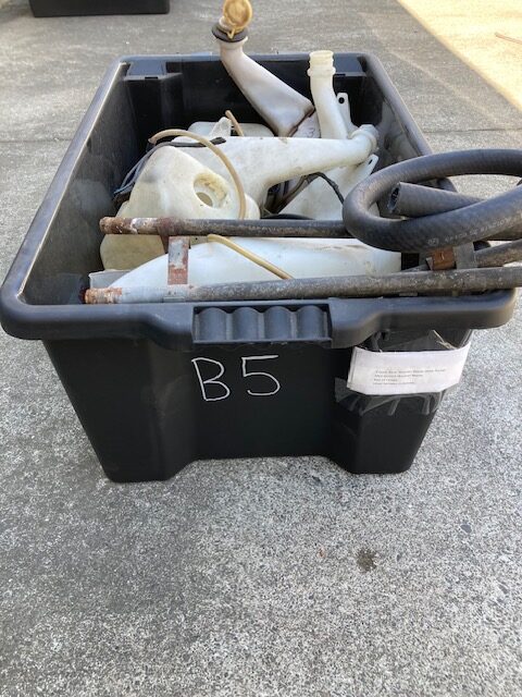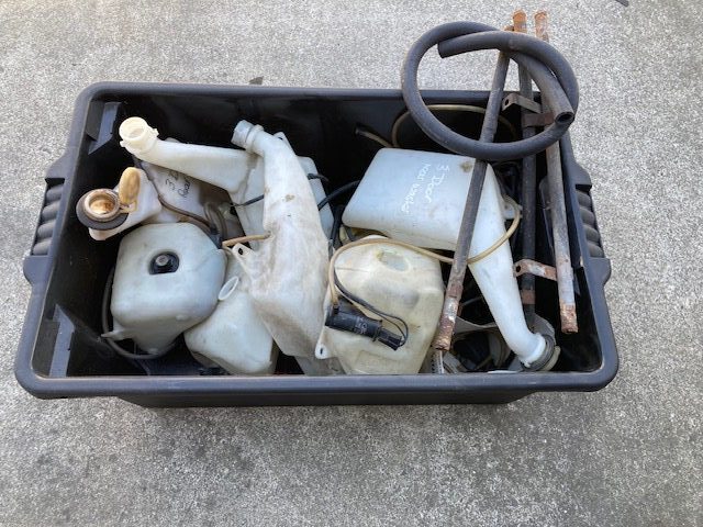 Used parts bin, full of washer bottles and related parts for Sierra Cosworth, contact Lodge Auto Centre with any inquiries. Items in bin are for sale individually. Many more bins of used Sierra Cosworth parts.