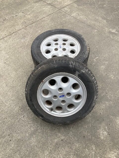 Set of four used Pepper Pot Sierra XR4i rims with centre caps. Very hard to find now. Tyres not suitable for road use. Tyres can be removed if freighting in New Zealand or export.